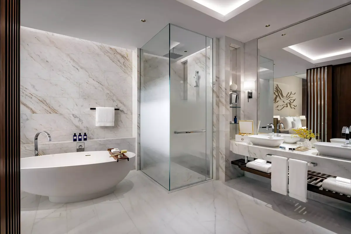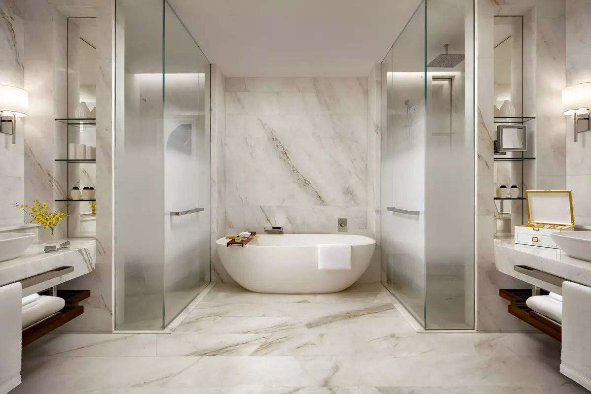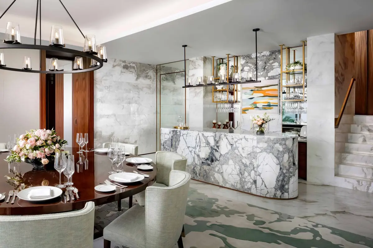 独立したリビング&ダイニングエリア、輝く大理石のバスルーム、贅沢なスイートルーム。